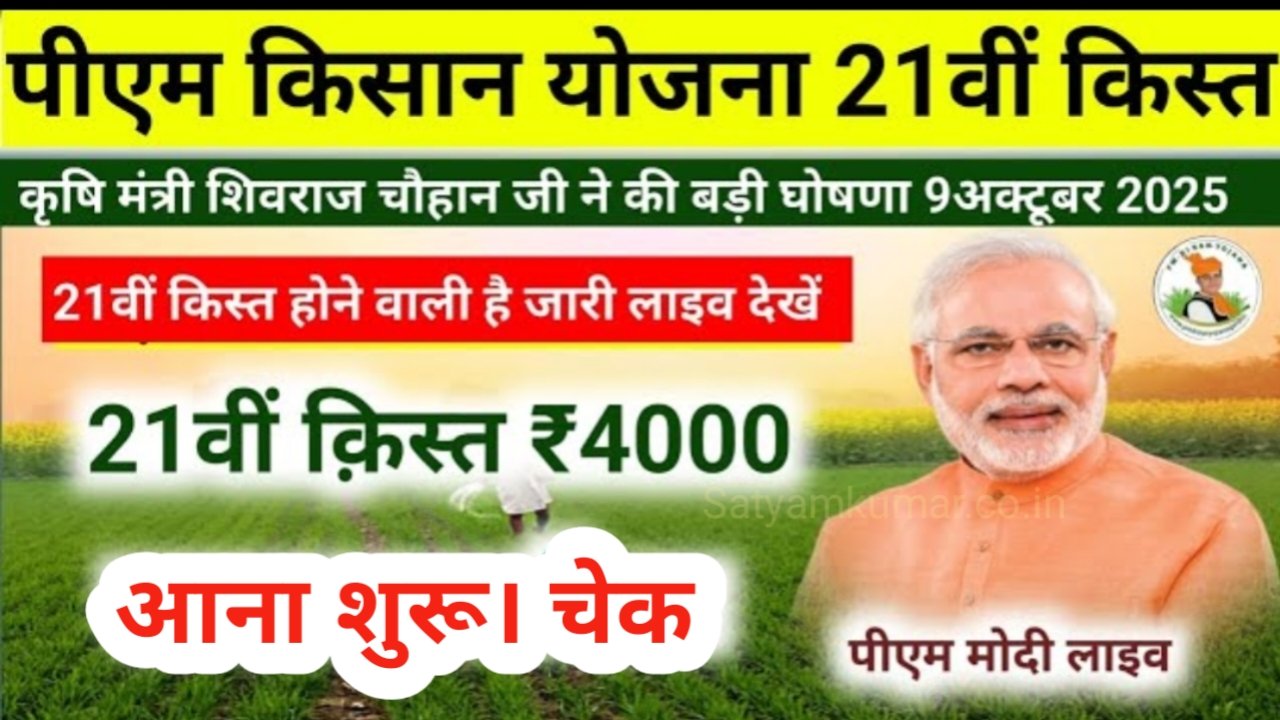 PM Kisan Yojana 21th Installment:पीएम किसान योजना की 21वीं किस्त आना शुरू। 9 अक्टूबर से लाइव देखें।
