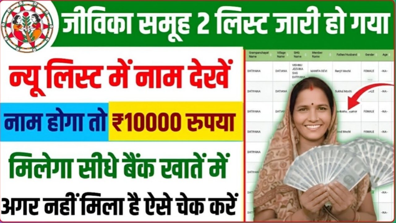 Jivika Peyment List Check : जीविका दीदी के खाते में ₹10000 की किस्त जारी । नहीं आने वाले को कब तक आएंगे पैसे डेट देखें।