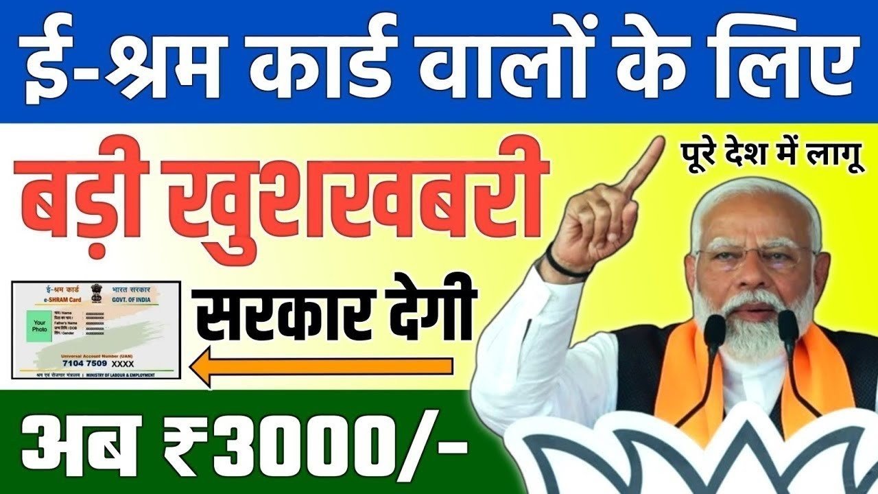 अक्टूबर 2025 तक ई-श्रम कार्ड धारकों के लिए केंद्र सरकार द्वारा ₹3000 मासिक पेंशन की स्कीम को लेकर अफवाहें और कुछ ख़बरें चल रही हैं, लेकिन असली स्थिति यह है कि यह राशि तभी मिलेगी जब लाभार्थी 60 वर्ष की उम्र पूरी कर लेगा।